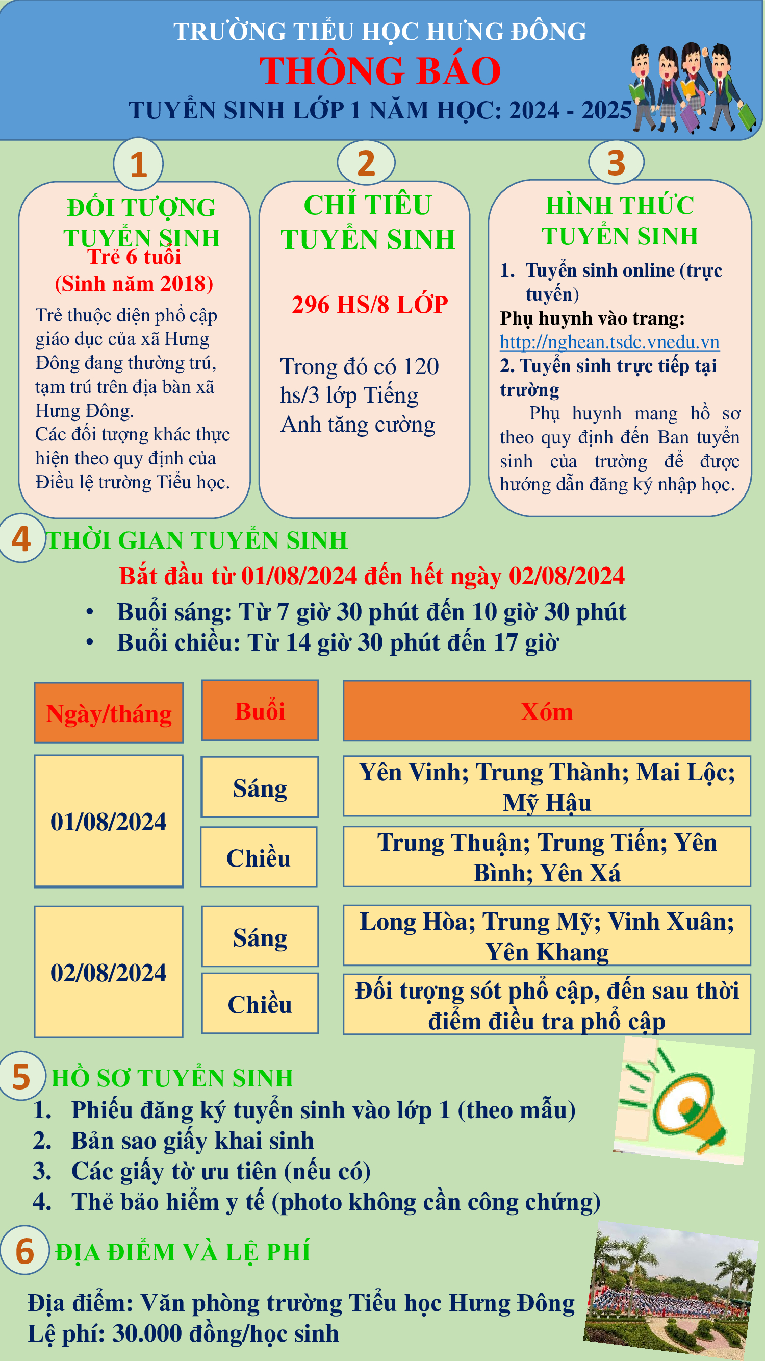 TUYỂN SINH LỚP 1 NĂM HỌC 2024-2025